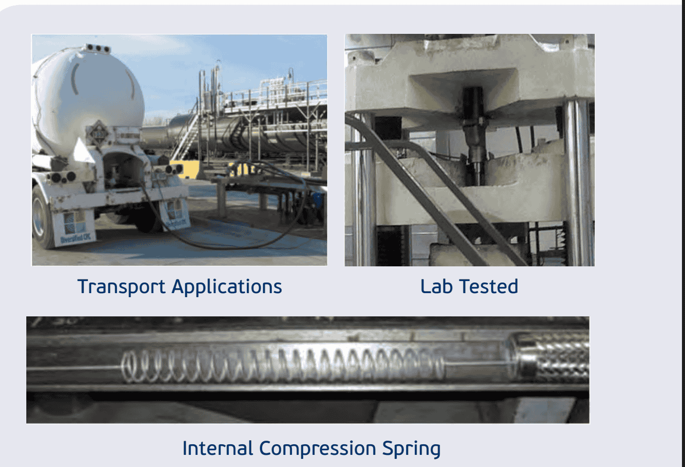 Te LifeGuard safety system is built into a metallic hose assembly that uses a 316L Stainless Steel Tubeand 304 Stainless Steel Reinforced braid. Utilizing a Engineered Compression Spring system with twonon-return valves installed within each ftting, we have now included a Tri-Bolt Flange System withthree shear bolts on one ftting that separates under acontrolled condition and prevents product lossin the event of an emergency separation. Te LifeGuard™ Tri-Bolt Breakaway Hose is designed toseparate at any angle when subjected to a designated pull force. In case of separation, its patentpending design assures that not less than two bolts will separate causing the internal valves to engageand the piping to remain intact with fow stopped on both ends of the hose