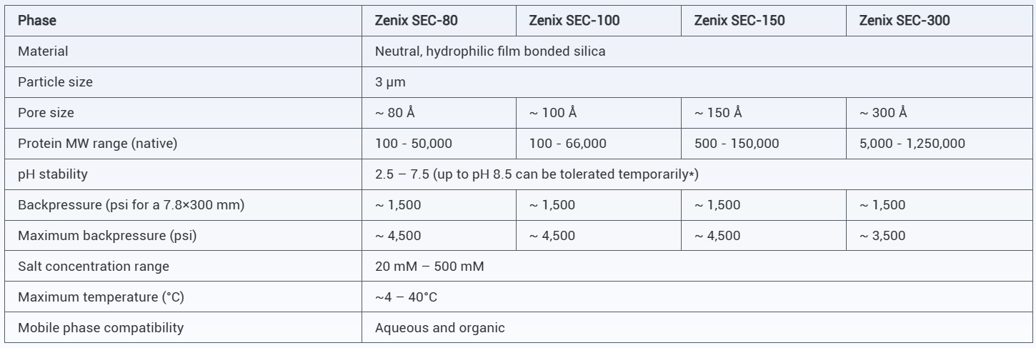 Made of 3 µm silica particles, Zenix SEC packing is a breakthrough technology for size exclusion chromatography