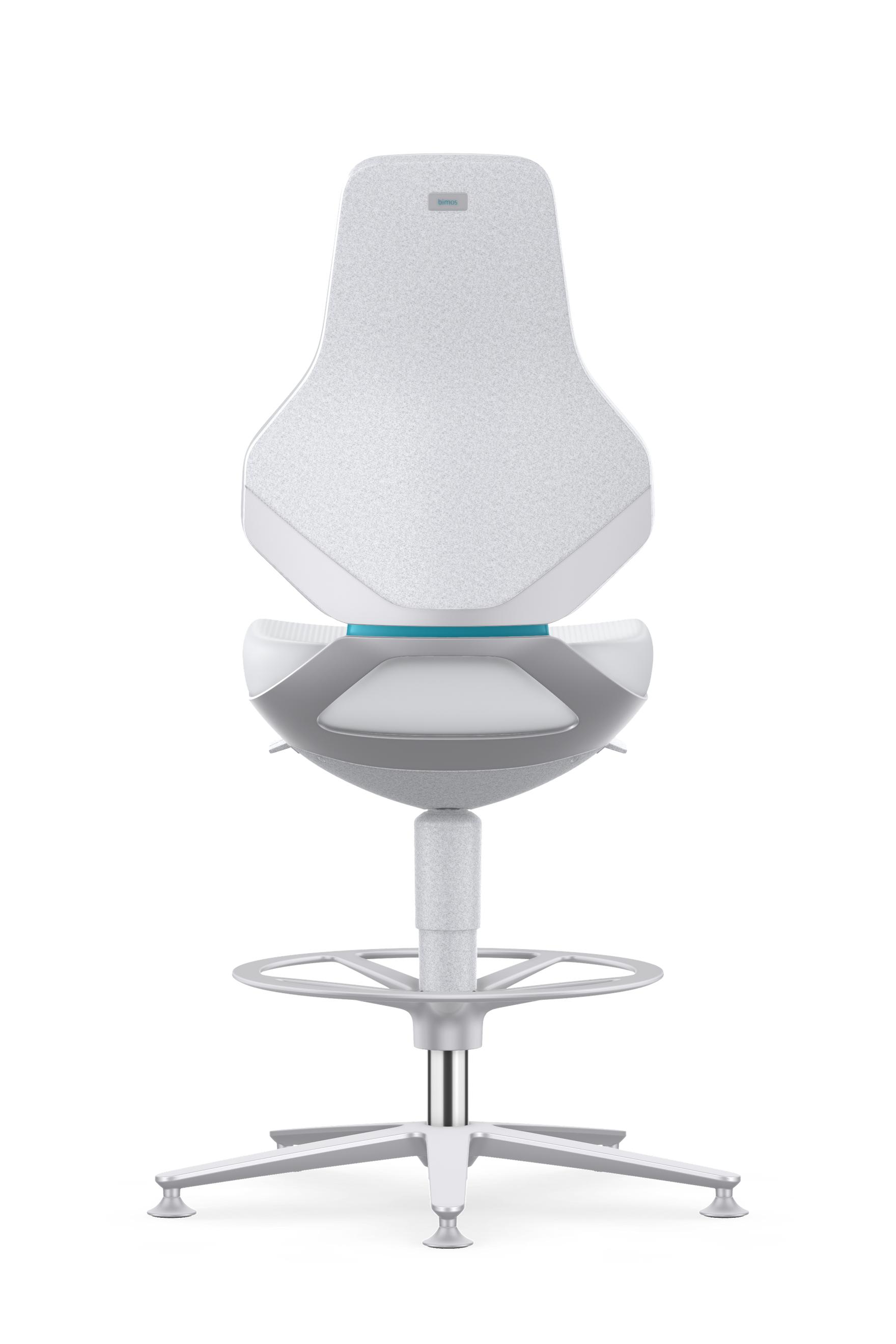 The aluminum parts are treated with a polyurethane power coating suitable to protect surfaces and increase chemical resistance during laboratory use. The metallic matte light grey color, consisting of Bicasa custom-made coating, is a remarkable innovation in aesthetic quality.